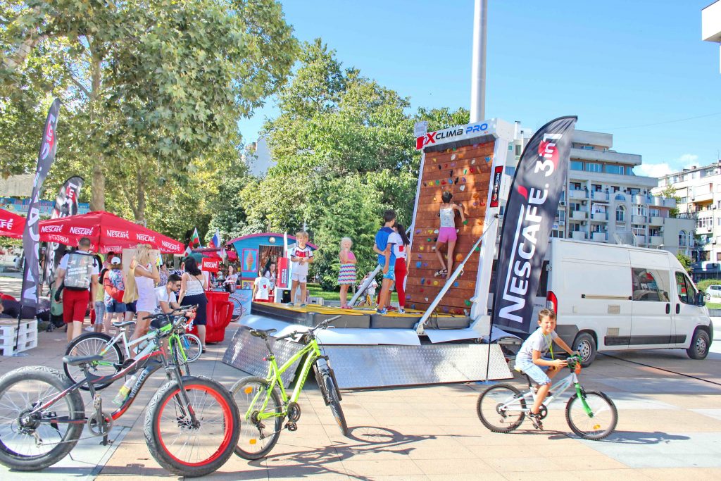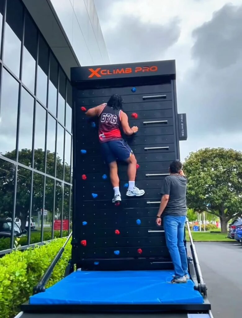 Dostępna mobilna wersja ścianki wspinaczkowej na przyczepie - idealna w branży eventowej.